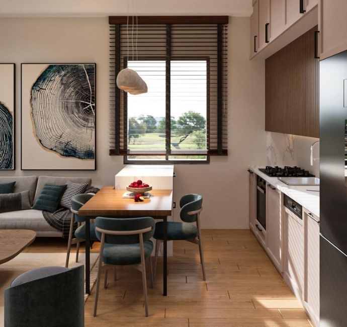 Kazdağları’nın eteklerinde, zeytinliklerin gölgesinde konumlanan bu 2+1 kapalı mutfak daireler; aile yaşamına uygun planlaması, ferah iç hacmi ve fonksiyonel tasarımıyla uzun soluklu bir yaşam vadeder.